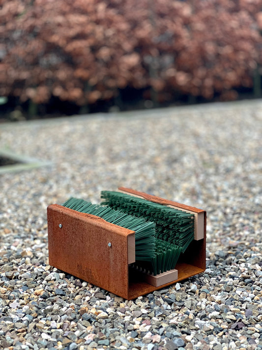 Ontmoet de Schoenveger met Natuurlijke Roest - een fusie van stijl en functionaliteit die perfect past bij de hedendaagse tijdgeest. Deze unieke schoenveger combineert een eigentijds ontwerp met een natuurlijk geroeste afwerking, waardoor hij niet alleen een praktisch hulpmiddel is, maar ook een decoratief element voor jouw entree.